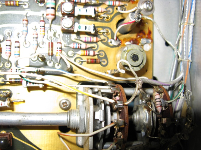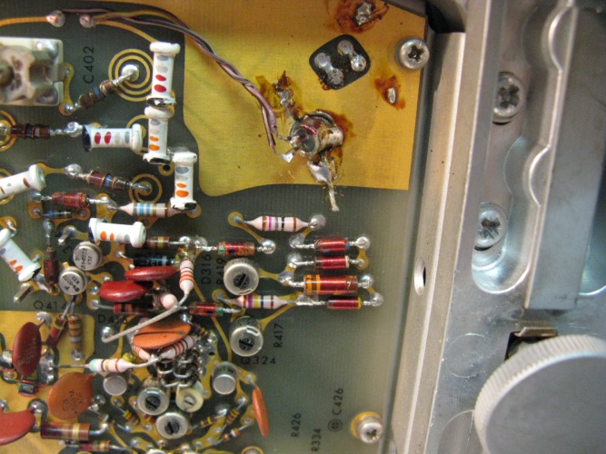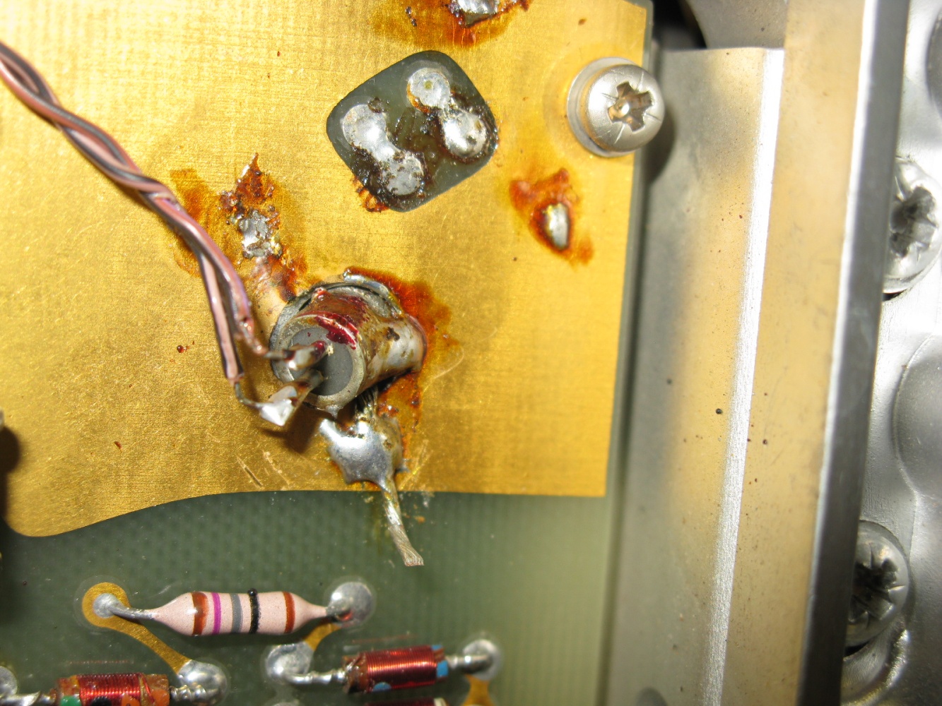 die Anschlüsse zum Röhrenhals; die Endstufentransistoren (sind das 155-0270 oder sowas) Sichtprüfung ob da verkokelte Widerstände o.ä. vorhanden sind