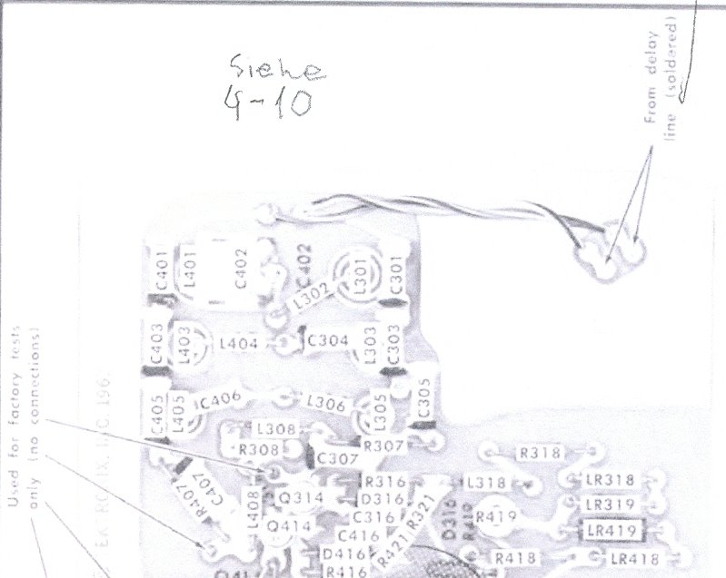 Kopie von Fig 4-12 Vertikal Output Amplifier circuit board, Handbuch. Erkennbar ist auch von woher die Lötstellen oben kommen. Hat jemand dazu eine Meinung? Funktioniert den so eine Schaltung wie in meinem Tek 454 überhaupt? So etwas finde ich leider nicht im Handbuch!