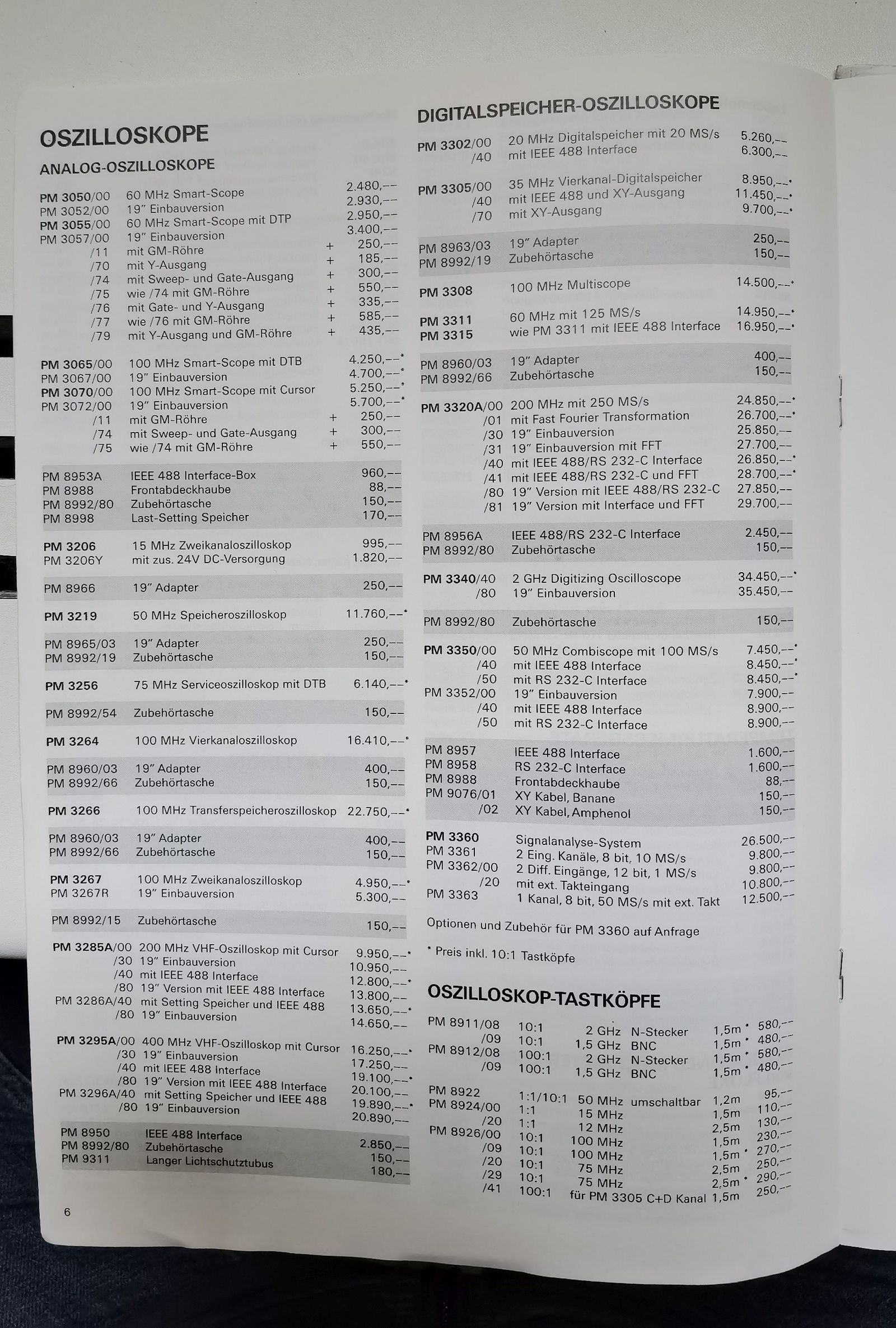 sooo, wie beschrieben hier nun der Preis. Es ist 1987/1988. Das war das Modell PM 3311 noch im Lieferprogramm. Das Oszilloskop kostete knapp 14950DM! Also nix für Hobbyisten. Die konnten sich damals ein "Hobby-Scope" PM 3206 für 995.-DM kaufen.