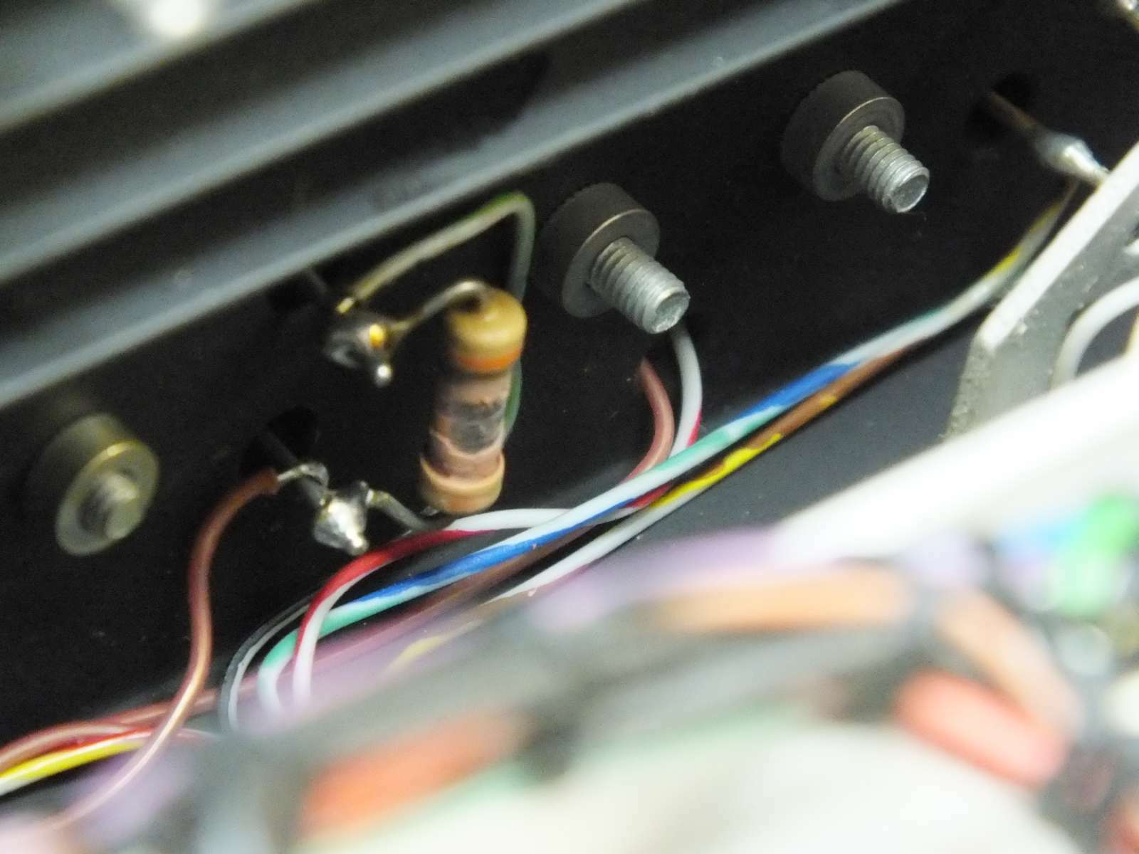so wie das ausschaut hatte der 2N3055 keinen Kontakt von C nach Plus... Er ist genau wie der Treiber isoliert montiert, sein C muß per Lötöse extra angeschlossen werden (kurze Brücke zur Lötöse vom Treiber) Der Widerstand muß erneuert werden, ein 270 Ohm tuts auch.