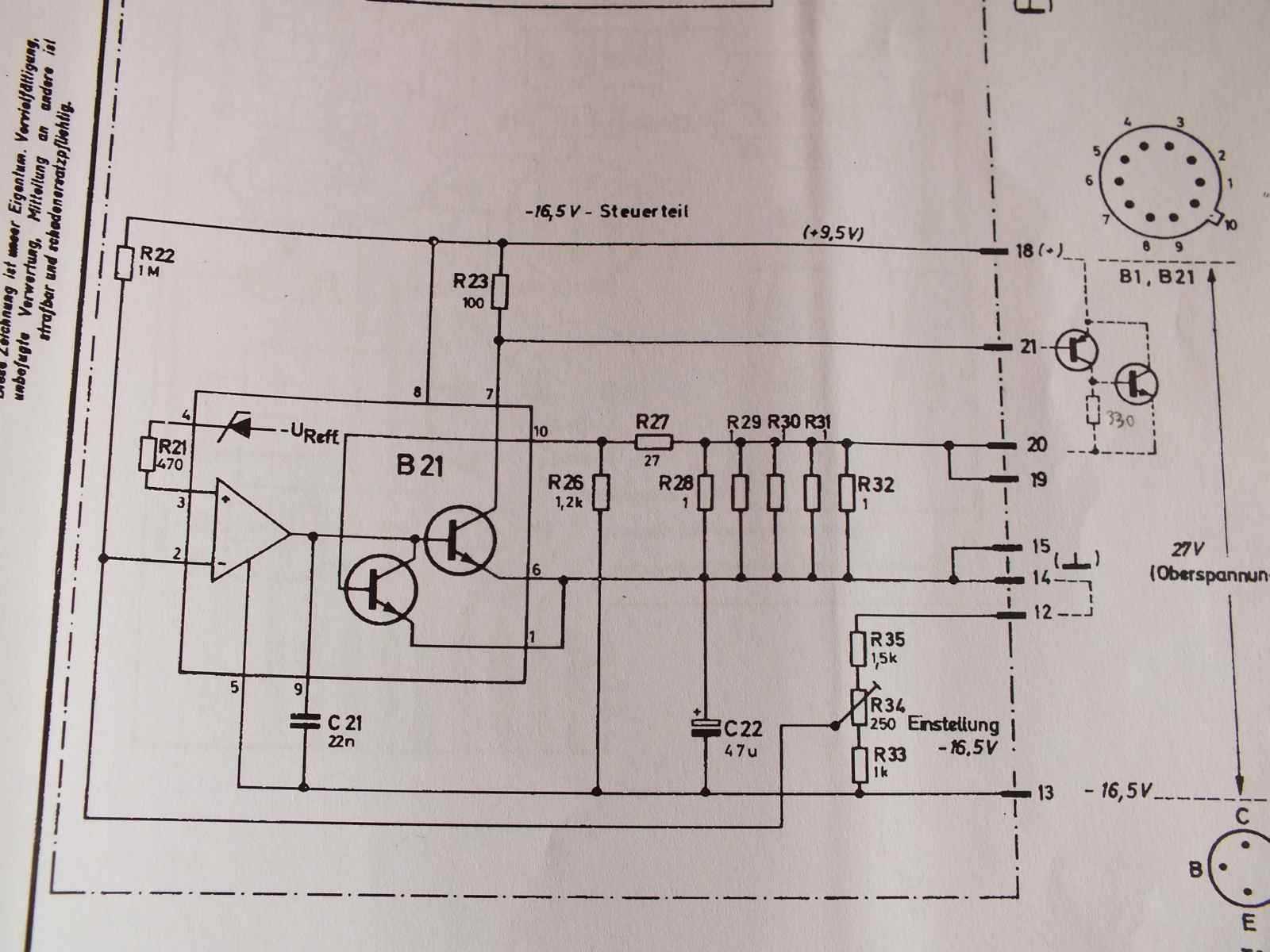 Hallo Martin, da die Betriebsspannung an der Platine fehlt, konnte keine messen, habe ich mich in Richtung Regelnetzteil messtechnisch begeben. Am ST3 sind die Spannungen in Ordnung, die BU15 suche ich noch, da sollten die stab. Spannungen anliegen.