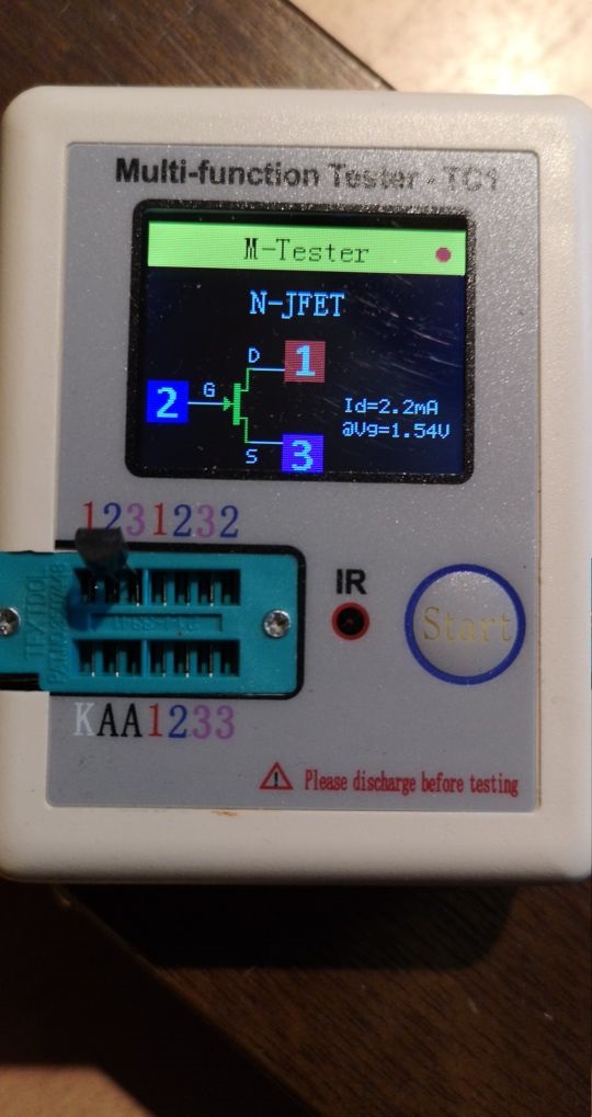 wenn det genau das Testgerät bestellt hat welches ich ihm empfohlen habe, ich hab lange Testreihen damit gemacht und hätte den Tip nicht gegeben wenn es nicht funktionieren würde. Das ist nicht erste Generation, die kleinen Tester werden immer besser, da steckt eine Menge Arbeit hinter. Es gelang mir nicht, ihm einen defekten oder teildefekten Fet unterzujubeln, entweder es zeigte den korrekt an, oder als damaged part wenn er kaputt war. Lediglich bei Germaniumtransistoren mit Leckströmen kam es zu Irrtümern aber selbst die sind zweifelsfrei erkennbar. Es wird die JFETs erfolgreich testen.