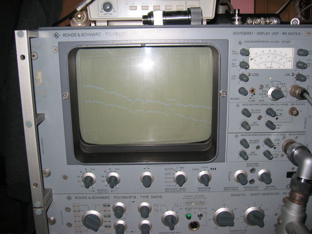 Mit dem SWOB bin ich jetzt am Testen. Die einzelnen Eingänge per Kabelmessung abgleichen. Der Eingang vom Messkopf und HF Eingang stimmen. Was mir noch unerklärlich ist, ist im höchsten Bereich der keine Rechteck zwischen Sektor 7-8.