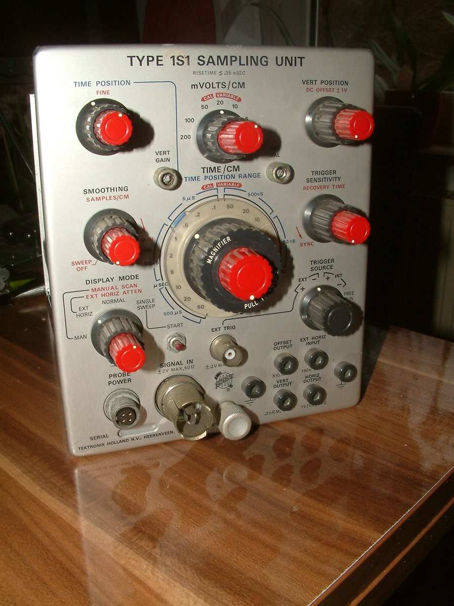 Dieser hier nutzt das Oszilloskop lediglich als Versorgung und Ausgabegerät, die eigentiche Arbeit macht er komplett intern und bereitet die Ausgabe so vor daß jeder Einschub-Tek in den er reinpasst damit zurechtkommt. Die Bandbreite des Oszis ist dafür belanglos ! Neben vielen Halbleitern, auch ganz speziellen, gibts 2 Röhren, einen Nuvi und einiges an Tek-Voodoo drumherum.