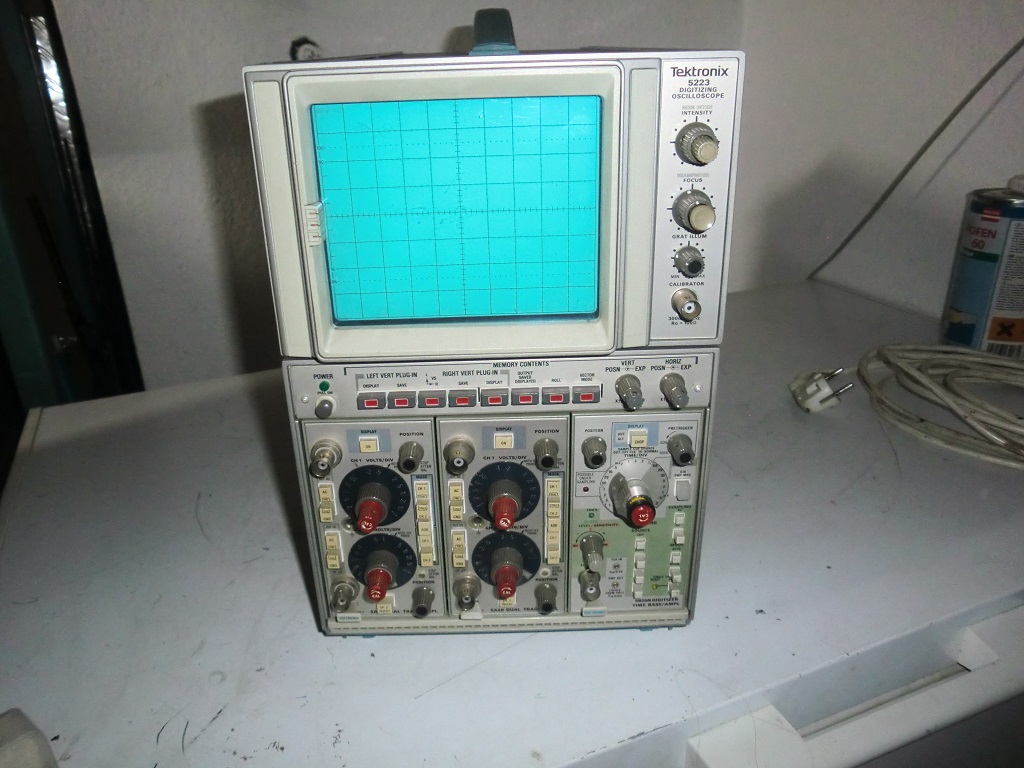 ich restaurier nun ein 5223. Das schöne Gerät ist etwas besonderes innerhalb der 5000er Serie, es hat analog 10MHz, kombiniert mit einem digitalen Speicher, diesen hat es für jeden der beiden Vertikalschächte separat. Zudem gibt es einen X+Y+Pen Lift Ausgang zum Anschluss eines Plotters, und sofern er die Werksoption 10 hat (dieser hat), eine GPIB Schnittstelle. Die vertikale Messauflösung beträgt 10bit.