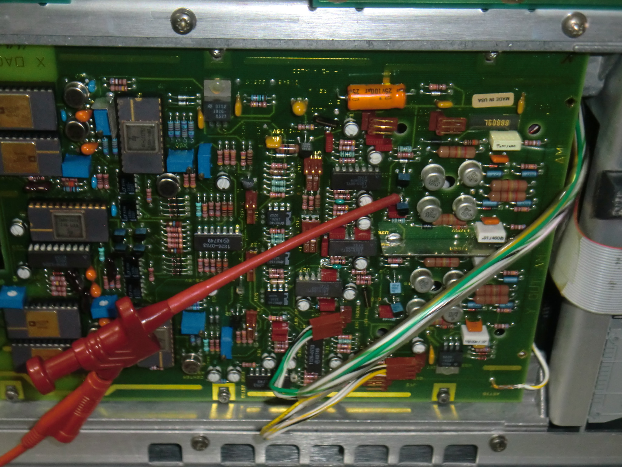 Defekt ist die Ablenkplatine im Sichtgerät, und zwar im analogen Teil. So ganz einfach wirds nicht, ich hab keine Service Unterlagen und es gibt haufenweise HP-spezifische ICs im Gerät.
