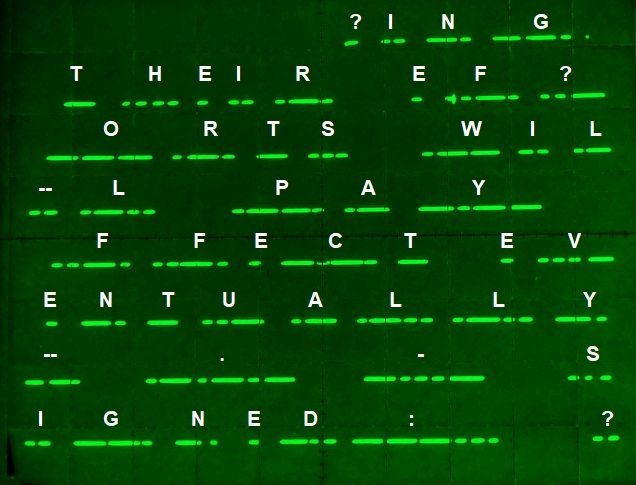 Morsezeichen (von SAQ Grimeton) auf dem Speicherbildschirm.......