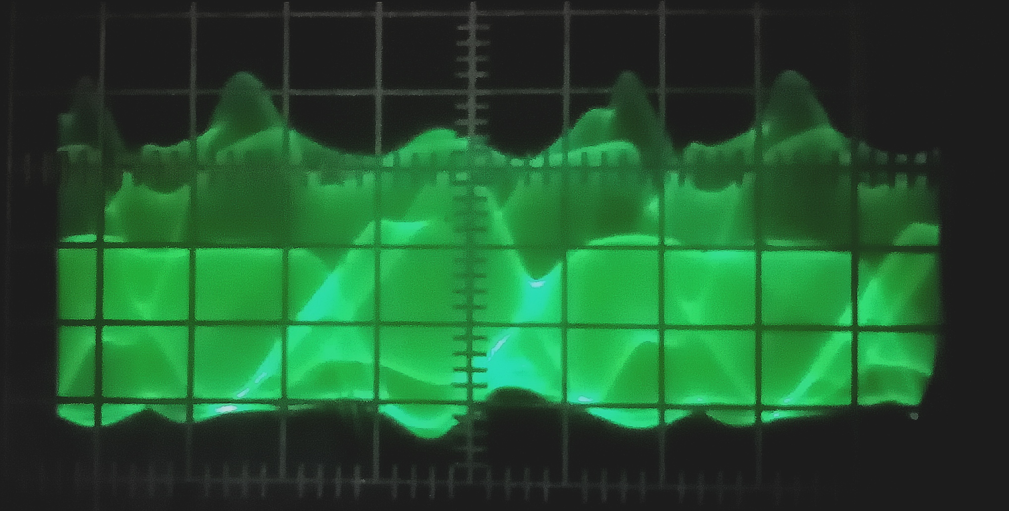 Bei guten (und damit teuren) Digital-Oszis bekommt man mehr oder weniger dasselbe Bild, wenn man für die Datenerfassung 'Peak' wählt und für die Darstellung eher kurzes Nachleuchten und auch die Helligkeit richtig einstellt. Einfach Digital-Oszis haben diese Einstellmöglichkeiten nicht unbedingt oder sind zu träge (das heisst, sie brauchen nach der Aufzeichnung einer Signalkurve lange, bis der Trigger wieder scharf ist und verpassen somit viele Triggerereignisse). Insbesondere wenn die Möglichkeit der 'Peak'-Datenerfassung fehlt, kann man keine solchen Darstellungen machen, weil es dann Aliasing und damit Signalkurven mit falschen Periodendauern gibt.