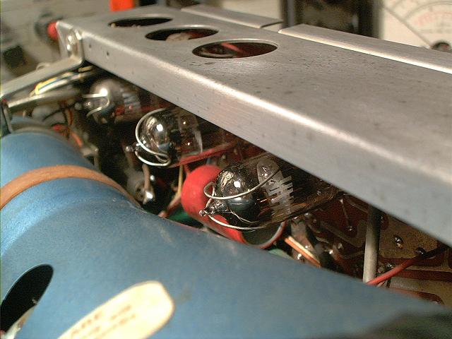 , aus England. Er werkelt mit 6 Stück ECC88 und einer ECF. Ein hübscher kleiner alter Ein-Kanal-Oskar. Das ist ein typisches Gerät daß zum reparieren alter Radios gebaut wurde.
