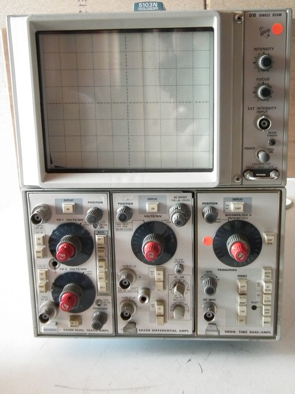 na herzlich glückwünsche zu Universal-Talent, diese 5103N. Große Bildschirm , günstig, genungsam und empfindlich (1mV/Div seriemäßig). dafür 2Mhz BW Nun bin ich gespannt, welcher Display hat 5103N, D10 oder so was. Ich habe 5112 und 5113 (D12 ((Dualbeam)) und D13 ((DualBeam Storage))