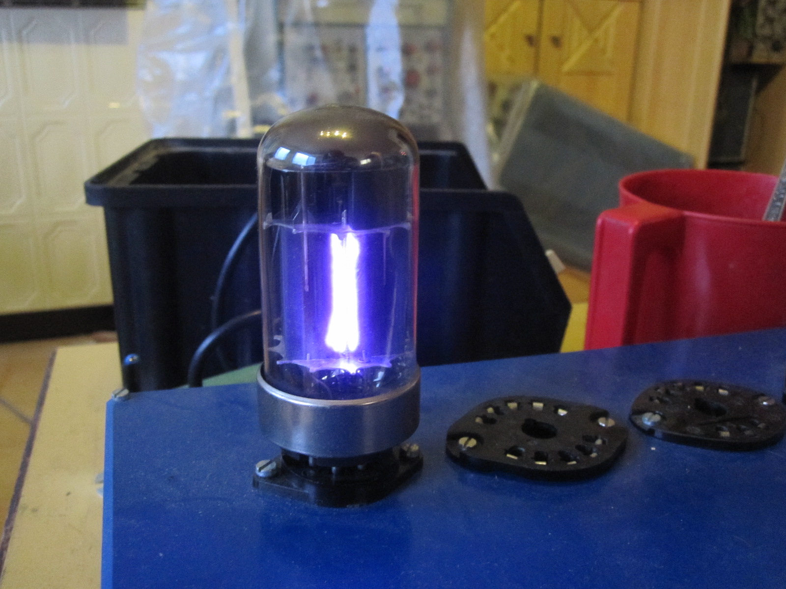 was das Vakuum-Problem angeht, da habe ich gerade ein ähnliches Problem mit einem Photomultiplier. Hier tritt ein Cherenkov-leuchten auf. Die Photokathode ist noch ok, aber mit der Zeit wird sie durch das 'Leck' wegoxidieren. Der Grund ist z.B. der Übergang von Metall auf Glas. Mit Helium könnte man das Leck finden, aber dann ist die Röhre natürlich ganz futsch. Oft sind auch stark verbogene Pins der Grund für so ein Leck. Hier dringt dann ganz langsam Luft in die Röhre ein.