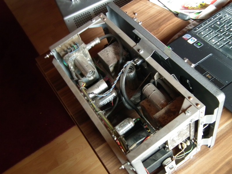 1. Das Netzkabel fehlt, er hat eine eher merkwürdige Buchse dafür 2. ein Skalenantriebsseil ist abgesprungen