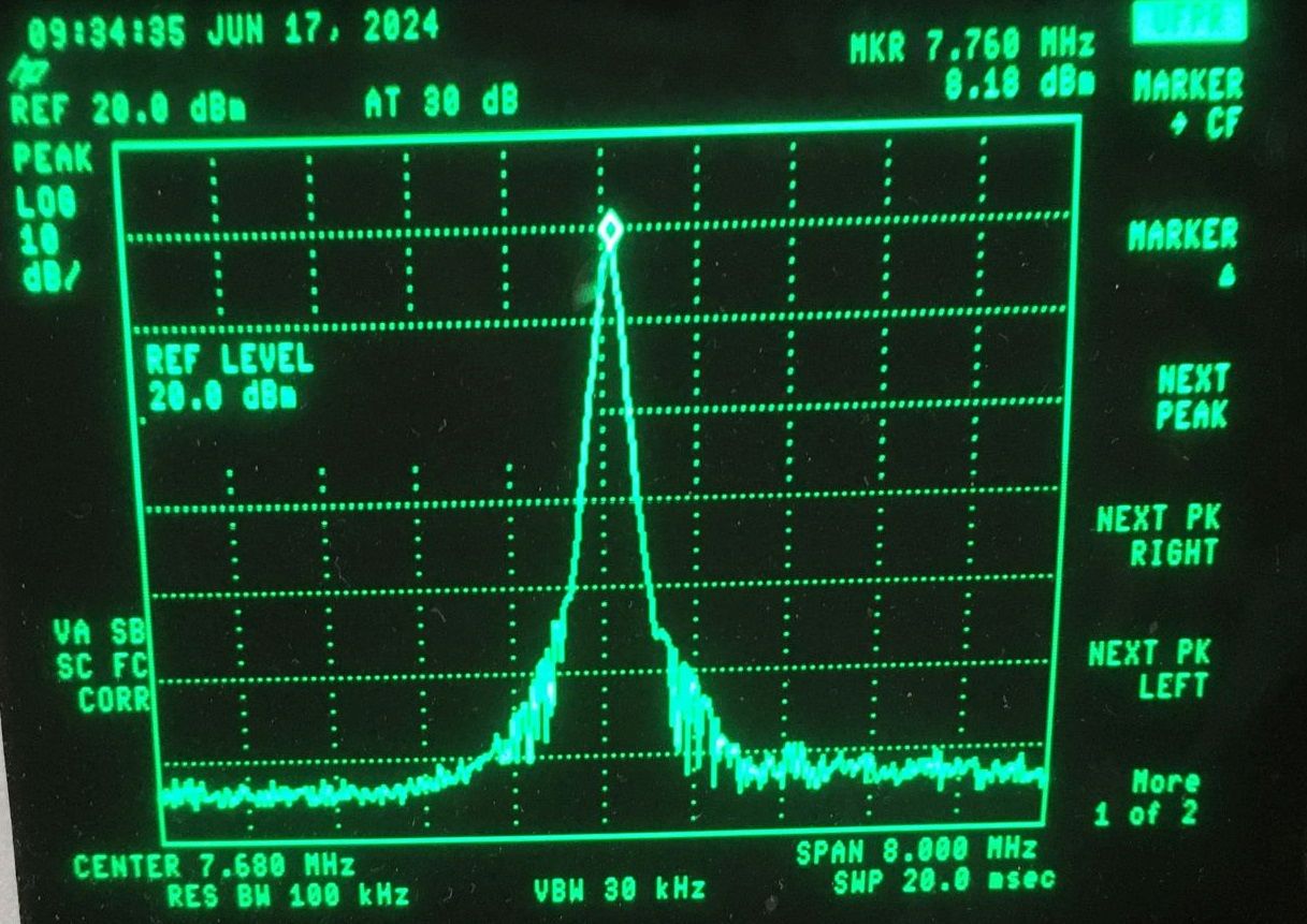 Praktisch nutzbar ist so etwas heute natürlich nicht mehr. Die Schaltung war für 125m = 2,4 MHz vorgesehen, funktioniert aber bis um die 8 MHz. Getestet habe ich mit einer RE085. Die induktive Dreipunktschaltung funktioniert mit und ohne angeschlossene Antenne.