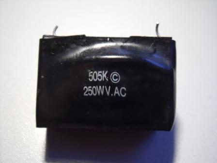 Ich habe hier ein bauteil aus einem Stroboscope. es war im Partyraum, und ist abgeraucht. Ich denke es ist der Ladekondensator für die Blitzröhre, aber welche Werte ? Ein Mitarbeiter beim grossen C meinte es wäre ein Kondensator 5 hoch 5, also 5 Microfarad mit 250V ? ich bin da skeptisch, wer kann es deuten ? Bezeichnung 505k mit Copyright Zeichen danach und Angabe 250WV.AC komisch.