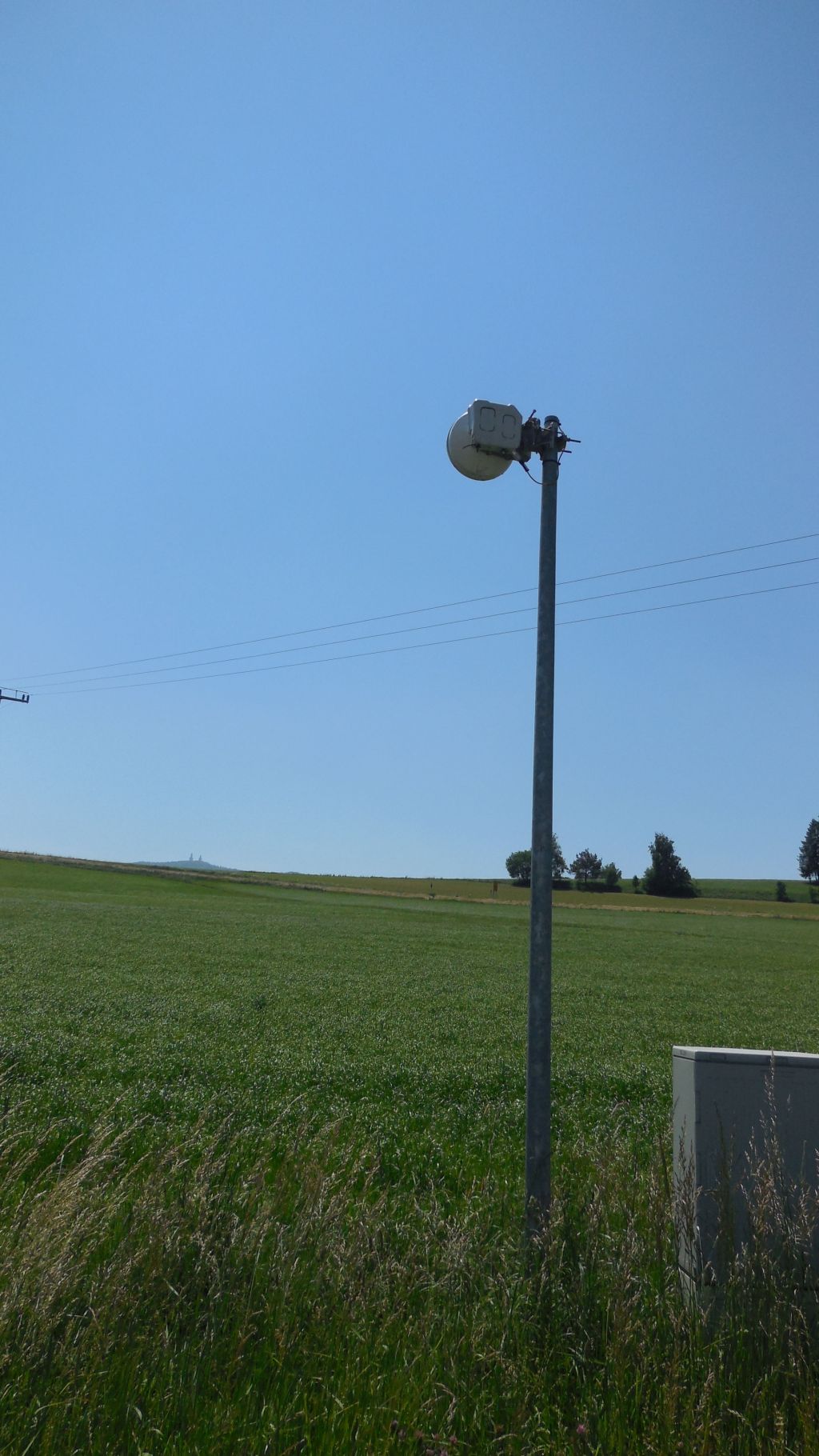 etwas merkwürdig ist diese Anordnung schon. Der "Elektronikkaste" mitten am freien Feld, nicht durch Zaun geschützt, eine GHz-Richtantenne passiv oder aktiv oder beides? Auch der Mast und Antenne eigentlich nicht gegen Wandalismus geschützt, ausgerichtet wahrscheinlich auf einen Militärkomplex.