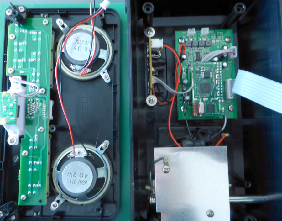 tatsächlich wird an einigen Stellen im Internet mit <<Stereo>> geworben! Nach genauerer Betrachtung des Gehäuses und der Seite 10 der BDA kann ich keinen Anschluß für einen zweiten LS oder KH sehen. Ich habe das Radio nochmal komplett auseinander genommen.