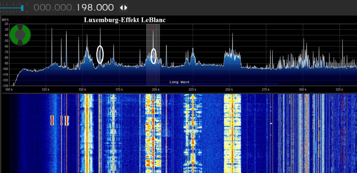 in Zusammenhang mit dem Cohiradia Projekt hat mir der Initiator eine LW-Breitbandaufnahme aus dem Schwarzwald zugeschickt, die vor wenigen Tagen entstand und um 20:15 UTC startete. Sie ist 75 Minuten lang. Zur gesamten Zeit ist der Luxemburg-Effekt auf dem Allouis-Träger in einer Deutlichkeit hörbar, wie ich es selbst noch nie feststellen konnte, obwohl die Richtung nach Allouis querab lag. Während zuerst die BBC noch nicht betroffen war, tauchte der Luxemburg-Effekt gegen 20:45 UTC langsam auf, um dann nach einer Stunde ein Maximum zu durchlaufen.