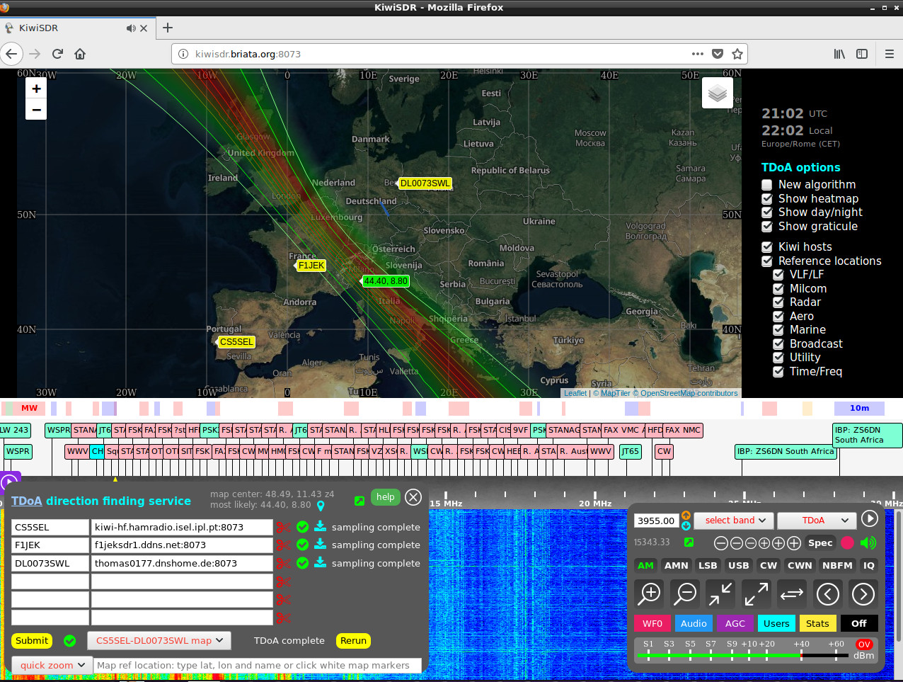 Das Ganze funktioniert natürlich nun auch mit anderen Aussendungen im kompletten Empfangsbereich der vernetzten Geräte. Wichtig ist halt nur der weitestgehend störungsfreie Empfang der anzupeilenden Station (Radiosender, Amateurfunker, Baken, ....) in den jeweils ausgewählten Referenzempfängern!
