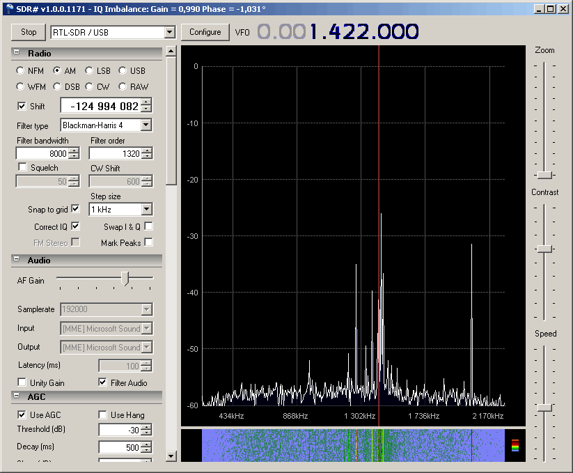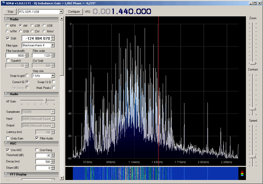 Dem DVB-T-Stick ist ein Up-Converter vorgeschaltet, der mit einem Ringmischer versehen ist, welcher unter 500 kHz eine höhere Dämpfung hat. Von Messung kann bei mir also keine Rede sein. Man sieht nur, dass da was ist.