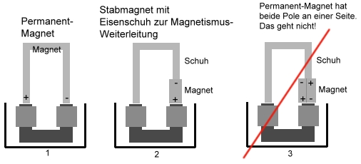 So hätte es funktionieren können. Bitte die GENAUE Lage vom Magnet und vom Joch und vom glatten Jochende beachten!