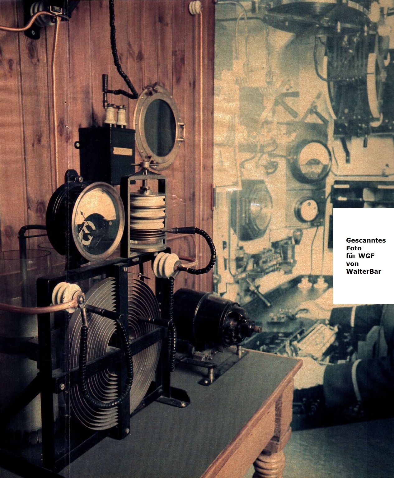 Der Zeitzeichensender Eiffelturm sendete 1914 mit wenigen kW auf Welle 2600m und einer fächerförmigen 6-fach L-Antenne. Die Tagesreichweite lag bei 2800km, nachts das Doppelte. Die Stahlkonstruktiion des Turms erwies sich als Strahler nicht geeignet. Eine Skizze findet man auf Wikipedia. Die Antennen auf den Gegenstationen (Schiffe, Zeitsignal für die Navigation) waren selbstverständlich L- oder T-Antennen wie auf der Titanic oder Olympic, die zwischen Hilfsmasten und den Schornsteinen gespannt wurden. Unter Deck traf man selbstverständlich keine Schalenkernspulen an, sondern robuste Variometer und kernige Isolatoren. Für den Deckdurchbruch ist Ähnliches zu vermuten.