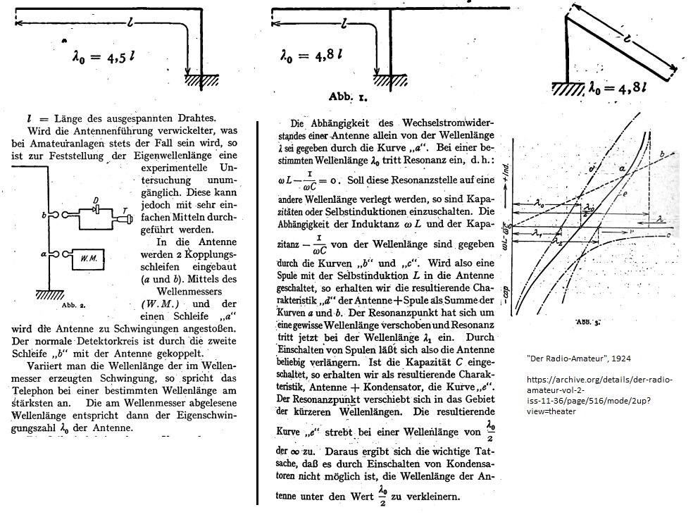 Hallo, Auf der Suche nach den historischen Hintergründen der Antennenentwicklung aus der Anfangszeit der Telegraphie, in der ja unterschiedliche Arten von Detektoren verwendet wurden, fiel dieses Fachbuch von 1926 besonders auf: "Aussendung und Empfang elektrischer Wellen" von R. Rüdenberg. h t t p s://archive.org/details/dbc.wroc.pl.001440/page/n3/mode/2up?view=theater
