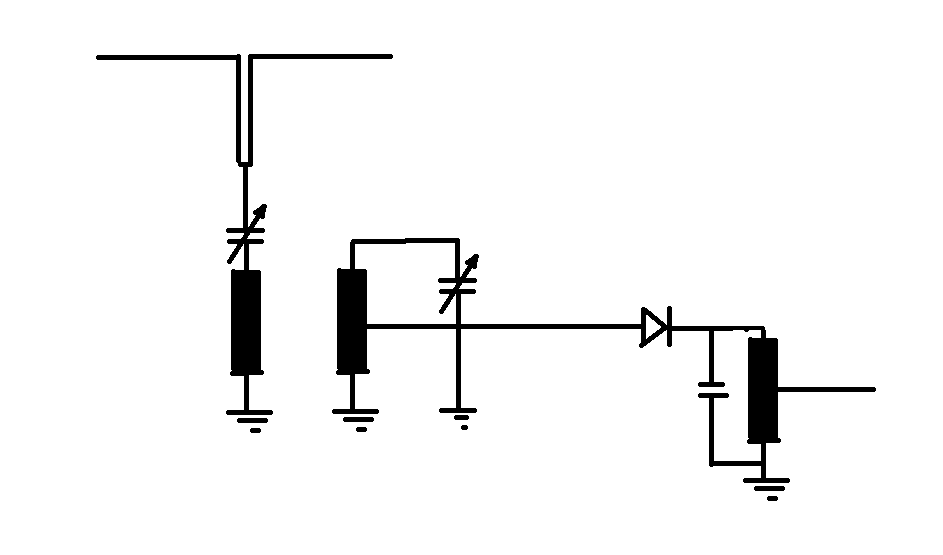 erst werden alle Beiträge gelöscht, danach kommen zum Teil merkwürdige Zusätze ins Spiel. Für den unwahrscheinlichen Fall, dass sich jetzt noch jemand auf LW und MW mit dem Detektorempfang auseinandersetzen will, zeige ich mein Prinzipschaltbild, das bei mir die besten Erfolge gebracht hat. Im Antennenkreis sollte in etwa Serienresonanz (zusammen mit der Dach- kapazität!) angestrebt werden. Misst man die Dachkapazität und rechnet ein wenig mit der Thompsonschen Schwingungsformel, dann kann (bei entsprechender Dimensionierung der Koppelspule) auf den Drehko verzichtet werden. Die Kopplung zum Parallelschwingkreis sollte variabel und lose sein. Die beste Anzapfung für die Diode muss gesucht werden. Die Anpassung an den Kopfhörer muss ebenfalls ausprobiert werden. Sollte kein Spartrafo zur Hand sein, ist ein 230/9V-Printtrafo ein guter Startpunkt. Der minimale Schalldruckpegel des Kopfhörers sollte 115dB (1kHz/1mW) betragen.