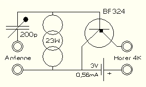 vorab möchte ich richtig stellen, der pnp-Transistor BF324 ist ein Si-Transistor. Bezugnehmend auf deinen Vorschlag, meine Aussage. Mein Experiment Detektor ist ausgerichtet mit minimalem elektrischen und mechanischen Aufwand Kurzwellen-Empfang zu versuchen. Somit bietet sich die Möglichkeit für jedermann mitzumachen. Nach eigenem Ermessen besteht die Möglichkeit aufzurüsten.