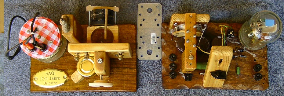Nachtrag 04.07.2024 Bei den Sendungen zur 100-Jahr-Feier kam der Detektor mit nachfolgendem mechanischen Kohlemikro-Verstärker zum Einsatz. Mit einer AA116 lag das Rauschen des Kohlemikro-Verstärkers knapp unter dem Störpegel, der war ziemlich hoch wegen Gewitterneigung. Antenne war eine 10m 1-Mastantenne mit "kapazitiver Beschwerung", eine kleine Schirmantenne sozusagen. Eine Aufnahme der kompletten ersten Sendung vom 02.07.2025 hier eingestellt: https://archive.org/details/saq-grimeton...20-utc-complete