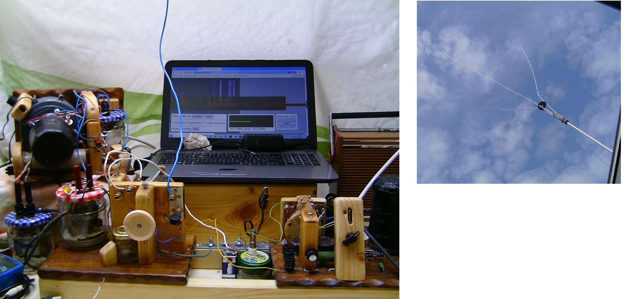Als Detektor diente übrigens der "Büroklammer-Selenzellen-Detektor", mit ihm hat man die schmalste HF-Bandbreit und er demoduliert die chinesischen KW-Signale nicht, die abends sporadisch bei der Schottky im Hintergrund hörbar sind, wenn die viel zu kleine Antenne hier Resonanz hat.