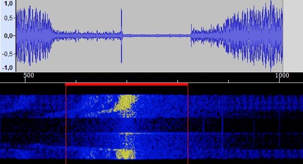 Die erste zeigt, dass schon mit der akustischen Resonanz "Druckkammer-Treiber" - "Kohle-Sprechkapsel" in diesem einfachen Aufbau eine gute Trennung der beiden RDL-Kanäle auf NF-Ebene möglich ist. In dem unteren Kanal sind die Morsezeichen invertiert (Anfang der Aufnahme).