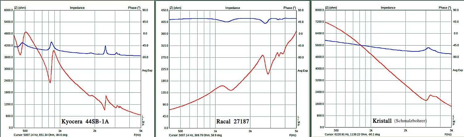 Bezüglich der Tests zur Kopfhörerempfindlichkeit sind wir als Amateure auf unsere Ohren angewiesen und somit ist das Ganze eine ziemlich subjektive Angelegenheit, das ist keine Frage. Theoretisch müßte aber doch ein Hörer, je empfindlicher er ist, bei einer bestimmten NF Leistung, die man gerade so zuverlässig mit einem empfindlichen Mikrofon aufnehmen kann, lauter sein, als ein unempfindlicherer Hörer. Heutige Kondensatormikrofone sind erstaunlich empfindlich und vielleicht käme man auf diese Weise zu etwas verläßlicheren Resultaten. Ich habe mir ein paar Monacor MCE-4001 beschafft, um zu untersuchen, ob die Spitzen im Impedanzverlauf wirklich auch Eigenresonanzen des Hörers abbilden. Bei der Gelegenheit wäre vielleicht auch das Thema der Hörempfindlichkeit eine Untersuchung wert.