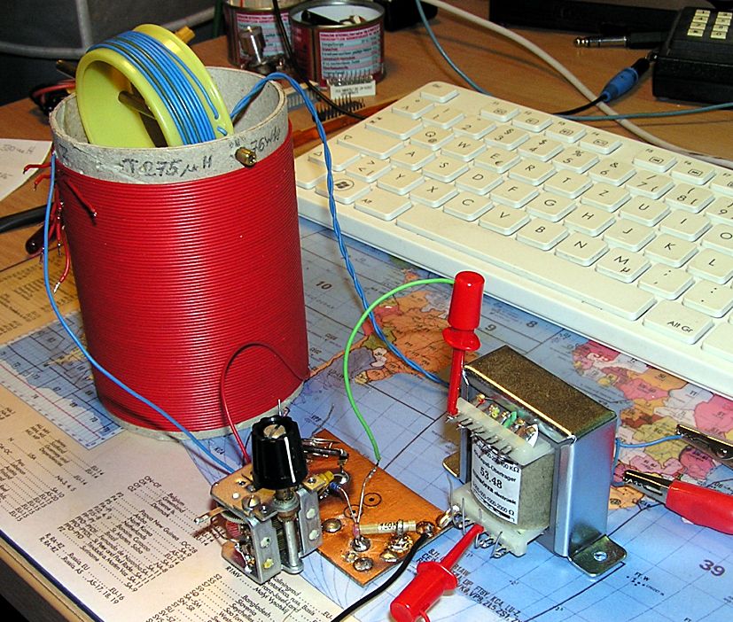 Die Einkopplung erfolgte induktiv über die Schwenkspule und wurde auf geringste Kopplung eingestellt. Die Frequenz betrug 500kHz AM 80% Modulation mit 1,4kHz. Für den WE lag die Grenze bei 16-18mV Eingangsspannung, für den Racal bei 22-24 mV. Man kann deutlich erkennen, daß der WE im Vorteil ist aber der Abstand zum Racal ist wirklich sehr gering. Die Anpassung des WE war am 1kΩ Abgriff die beste, die des Racal bei 500Ω. Was auffällt: Je kleiner die Pegel werden, um so weiter verschiebt sich die Primäranpassung nach höheren Werten, bei den Grenzwerten lag sie bei 500kΩ. Morgen Abend werde ich die Rahmenantenne aktivieren und damit auch noch einen Test machen. Mal schauen