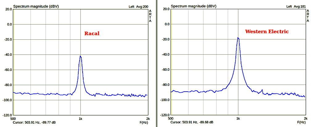 Kurzum, die ermittelte Differenz der Scheinleistung zwischen WE und Racal liegt nach meinem Test zwischen 3 und 5dBm. Der Racal Hörer benötigt demnach für die gleiche Lautstärke die doppelte bis reichlich dreifache Leistung. Das scheint viel aber rein gehörmäßig ist die Differenz an dem niederohmigen Spannungsteiler sehr gering.