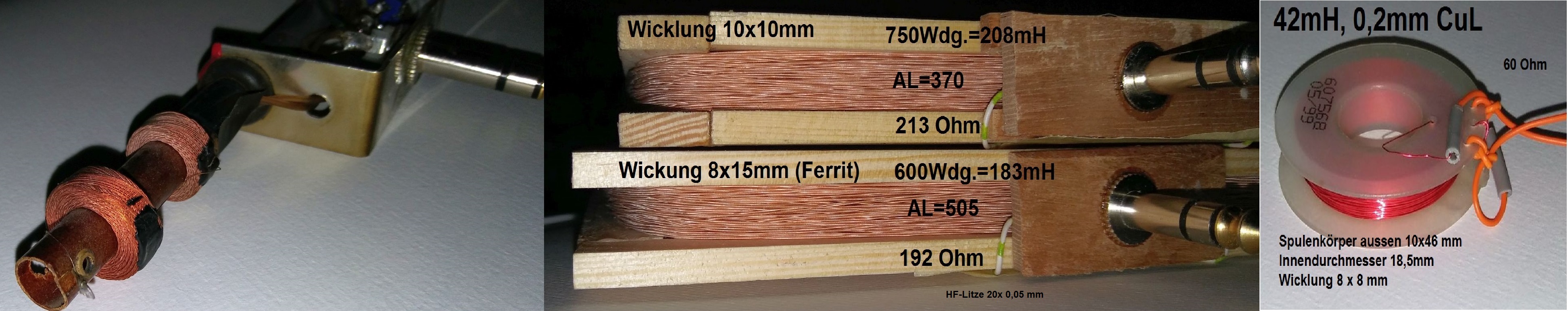 Im Ferritrahmen war ich auf 8 mm durch die Abmessung des Ferriten festgelegt. In der Ferrit-losen Wicklung konnte ich bewusst 2 mm drauflegen, was mir fast 200 Windungen erspart hat. Der Nachteil ist die erhöhte schädliche Windungskapazität, der man durch Kreuzwickeltechnik begegnet ist. Auf VLF spielt sie aber nicht die entscheidende Rolle. Ob Jens mit seiner Wicklungs-Parallelschaltung erfolgreich sein wird, bleibt abzuwarten. System Vogel machte das in den LW-MW-Rahmen aber auch so. Die waren aber kapazitätsarm gewickelt.