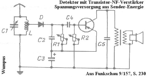 habe gerade mit vielen Krokodil-klemmen einige der Schaltungsbeispiele durchprobiert. Es kommt immer aufs selbe raus, meine Antenne ist halt a bisserl zu kurz. 10 Meter Außenantenne, aber ich habe das Kabel einfach ins Haus gelegt, hätte koax 50 ohm Kabel gebrauchen sollen, habe ich zu hause, will ich heute verbessern. Auch kann ich im Garten ein bisschen zickzack Draht spannen, dann weiß ich zwar nicht mehr, wie ich die Antenne ausrechnen muss, aber der Versuch soll zeigen, ob ich eine höhere Spannung zustande bekomme. Ach ja, ich habe unter last nus so 350 bis 380 mili Volt zur Verfügung, der AF106 geht bei so einer geringen Spannung noch am besten, die AF125 126 und 127 gehen gar nicht mit dieser geringen Spannung, der AC128 bedingt.