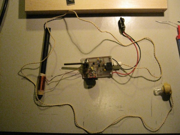 ja das weiß ich, zwei Antennen wären besser, aber die zwei Frequenzen, die ich gebrauchen will liegen so weit auseinander, das es bestimmt möglich ist. Der starke Ortssender ist auf 675KHZ, mein Lieblingssender auf 1586 KHZ. Hier ist ein Foto vom Stromversorgungsempfänger, ohne Last habe ich so 1,7 Volt.