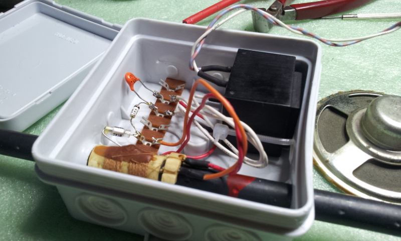Hallo Mani, Mark wollte den Lautsprecher auf der 230V-seite anschließen. Das hochohmige kommt aber an den Detektor.