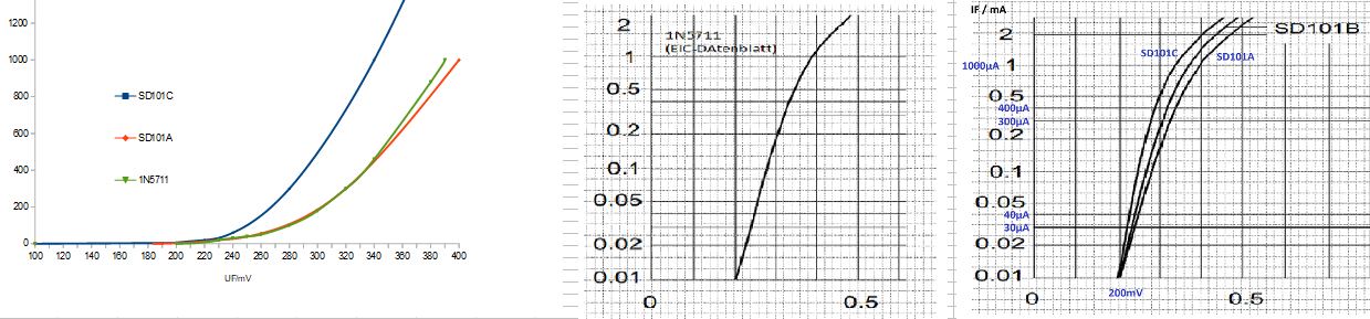 Mit der SD101C konnten die besten Ergebnisse erzielt werden, das Datenblatt zeigt einen recht scharfen "Knick".
