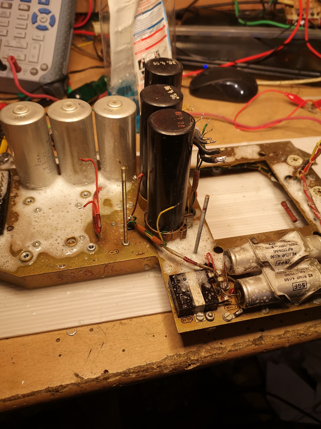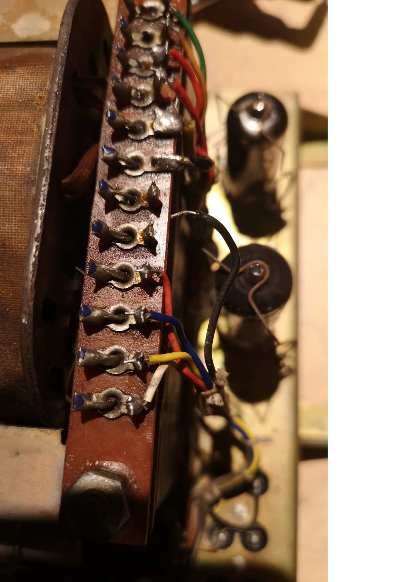 ja, so macht das Basteln deutlich mehr Spass. Dass so ein Brocken nicht in drei Tagen fertigwird ist völlig normal. Ich hab die Geduld mich um alles zu kümmern. Jetzt kommt die leidige Sache mit den Kondensatoren. Die sind einfach überall. Das Radio hat alle Röhren Topform, geprüft mit dem Neuberger. Elkos wurden teilweise erneuert. Es bleiben noch: Wickelkondensatoren, genau da siehts nicht so dolle aus momentan :-)
