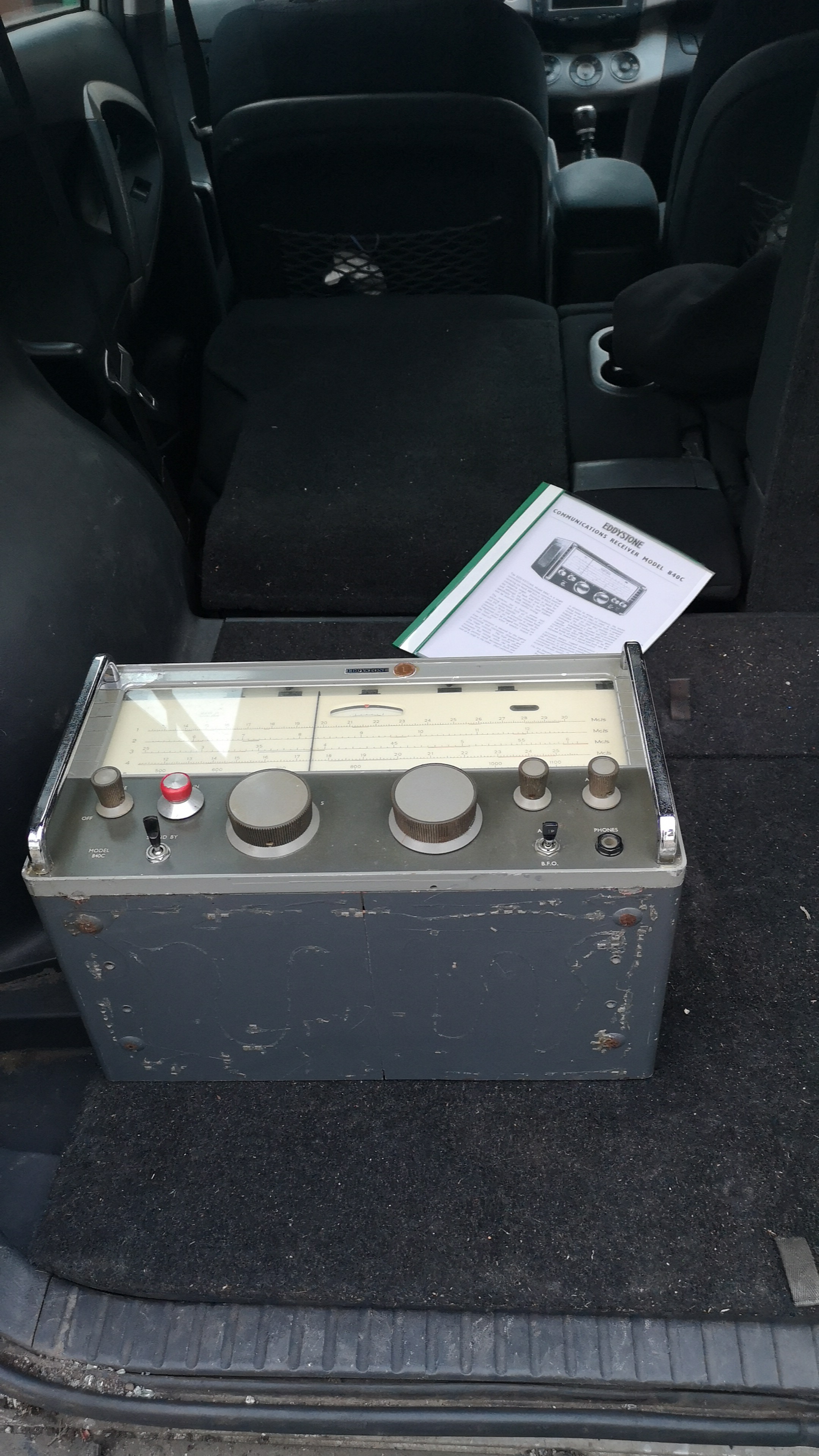 es betreibt 8 Rimlock U-Röhren, 5 bandiger Kommunikationsempfänger englischer Herkunft. Aktuell sitzt es noch im Auto. Aber für die kühlen Herbsttage ist das schon eine nette Baustelle. Der Knopf wurde zur Fahndung ausgeschrieben