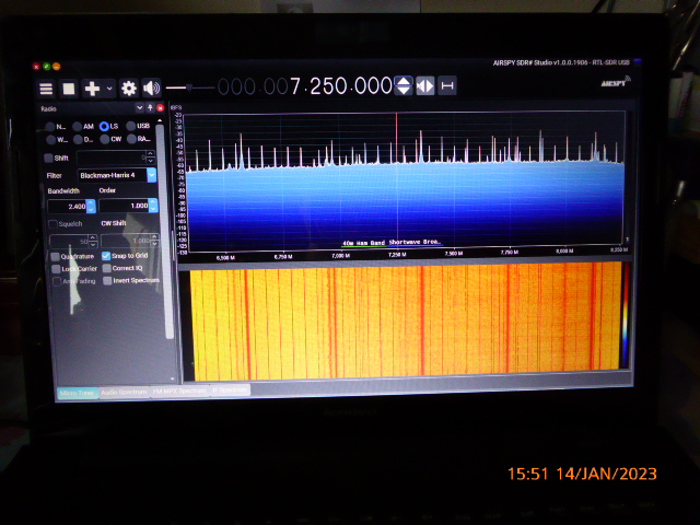 Ich habe mein SDR mal wieder aufgebaut. Muss noch die Langdraht nach unten ins Computerzimmer legen, dann können wir mal die die Einstellungen für Kurzwelle im SDR# vergleichen.