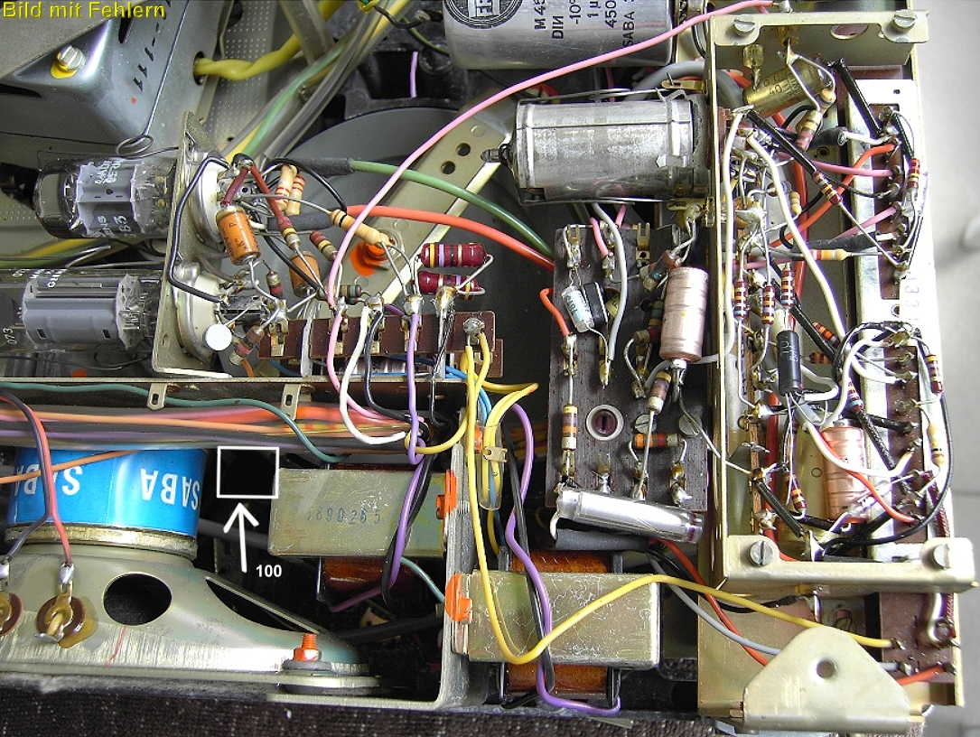 Was ist zu sehen? Ein Teil des Innenlebens eines Saba TK220-S von 1962.