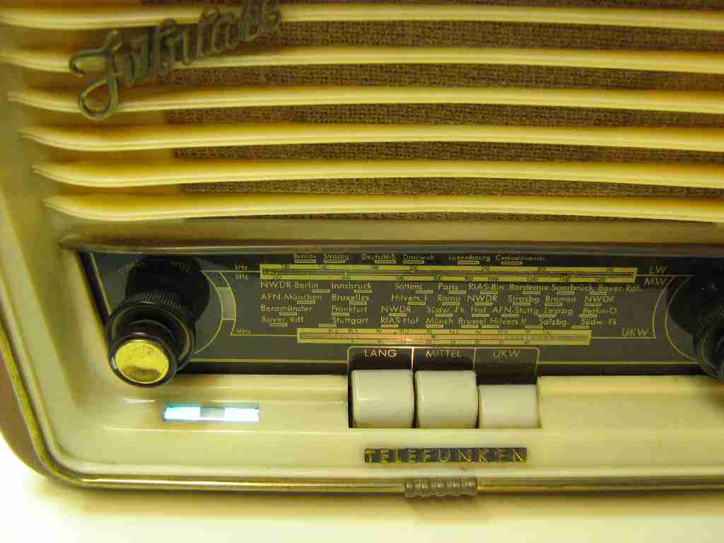 Hintergrund dazu: Diese Jubilate habe ich schon seit meiner Schulzeit, damals von den Eltern eines Mitschülers "zum Ausschlachten" geschenkt bekommen. Das Innenleben war auch schon etwas zerfleddert, aber es packte mich die Neugier, ob ich das Ding wieder zum Laufen bekommen könnte. Nach Stunden des Bastelns dann... Töne aus dem Lautsprecher - es spielt! Und weil mich der Basteltrieb nicht ruhen ließ, kam ich auf die Idee, ein MB "nachzurüsten". Nur wohin damit? Designerische Inspiration war gefragt... und dann... heureka! Säge und Bohrmaschine her, eins-zwei-drei, ein Schlitz herbei. Nur noch die Verdrahtung und Umschaltung zaubern - fertig war die Laube. Das Radio spielte dann zunächst noch sehr lange in meiner Werkstatt, bis es beim Auszug aus dem elterlichen Hause im Keller verschwand. Vor wenigen Tagen kam es wieder zum Vorschein, wurde geputzt und behutsam am Stelltrafo zurück ins Leben geholt. Mit lautem hellen Klange verkündet diese Jubilate noch immer, was die Welt funkt...