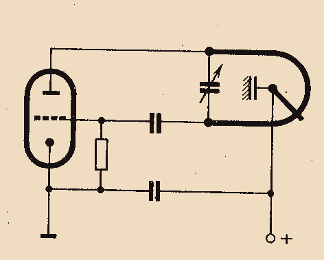 Zur Lösung: es handelt sich um A. Bei UKW Oszillatoren mit einer induktiven Spannungsteilung konnte das Spannungsverhältnis über einen Schleifer auf dem Bügel der Drahtschleife eingestellt werden. Die Erdung des Schleifers erfolgte über eine großflächige Kapazität, hier über Glimmerschicht, gegen Masse. Diese Verbindung wurde in der Fachsprache (eher Fachjargon?) Verklatschung genannt. Quelle: Schiffel/Woletz, Prüfsender für UKW Empfänger, Teil 1, RPB Heft 17, Franzis Verlag, München, 1954