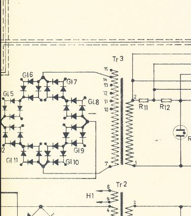 das Gerät ist von 1958 und bei den 8 Brücken handelt es sich um Trockengleichrichter 360/200.