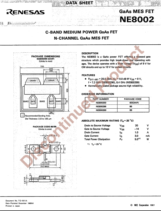 4 Stück C-Band Medium Power GaAs MES FETs NEC/Renesas NE 800296