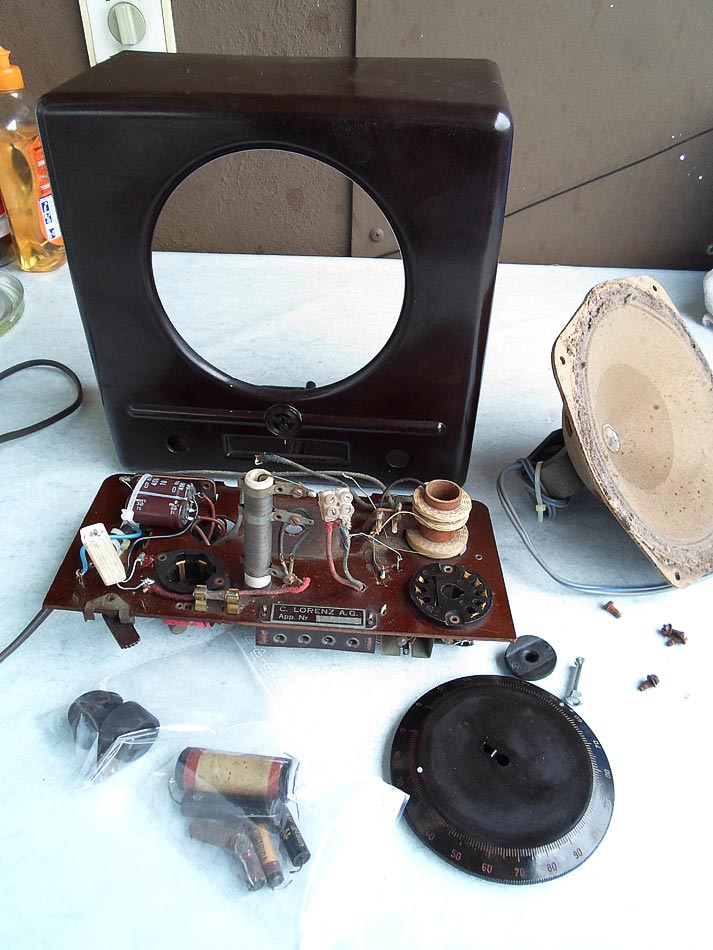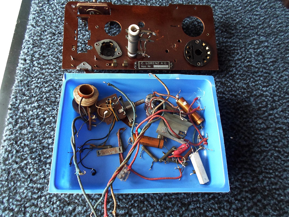 Das Radio war schon "überholt". Und die Arbeit war ziemlich schlampig gemacht. Zum anderem da fehlt noch ein Abstimmdrehkondensator, mit Schalter. Dem suche ich jetzt.