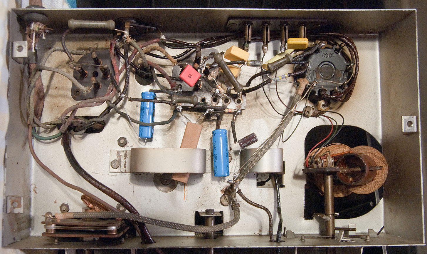 Warum ist die Spannung dort zu hoch? Es könnte sein, dass durch die Endröhre zu wenig Anoden/Schirmgitterstrom fließt. Das kommt dann, wenn die Gitter-1-Spannung zu hoch ist. Die wird bei dem Gerät über den 450 Ohm Widerstand im Minuszweig des Netzteils erzeugt.