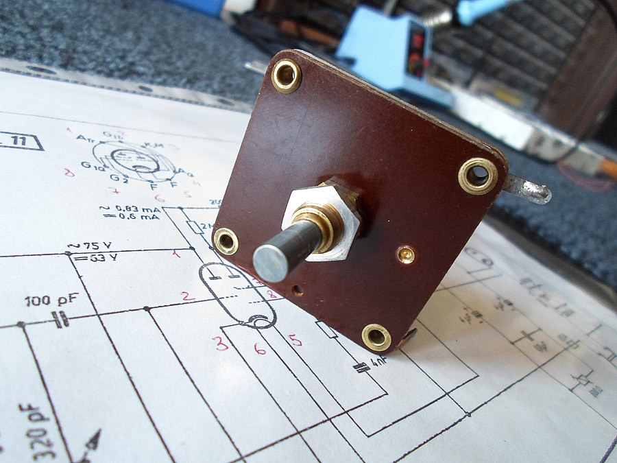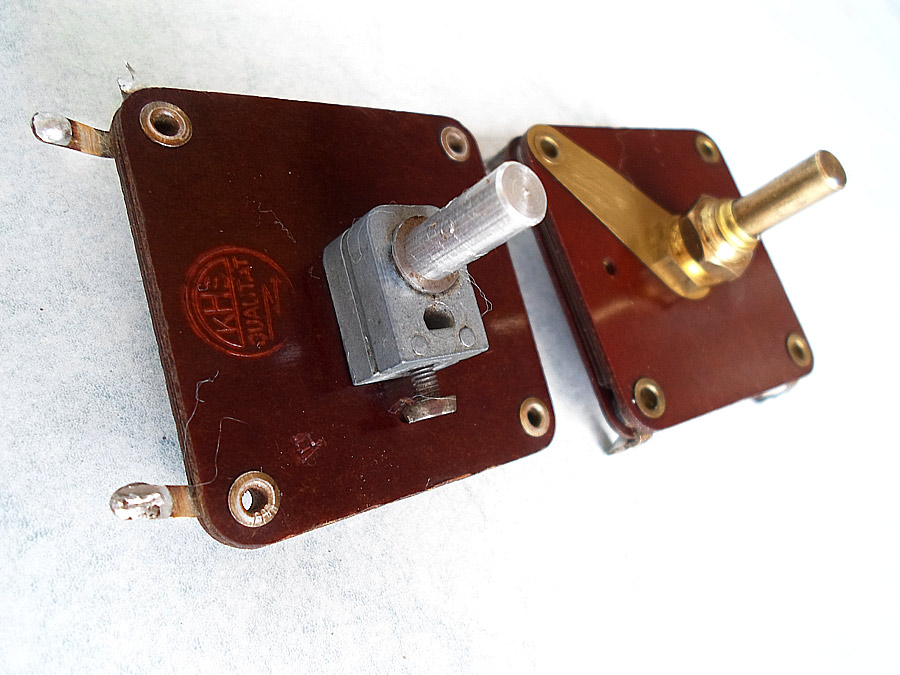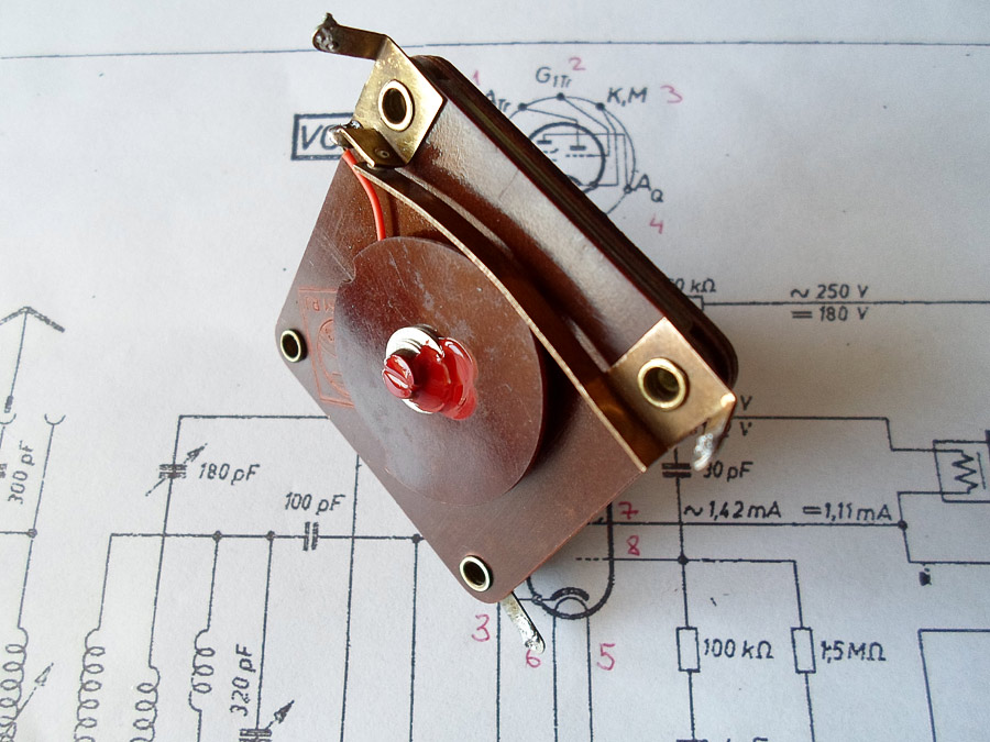 endlich bin ich mit dem Drehko so weit. Neulich habe ich von einem Radiobastler, als Geschenk, zwei defekte Kondensatoren bekommen. Nach kurze Zeit habeich zusammengebastelt ein Drehko und er funktioniert super.